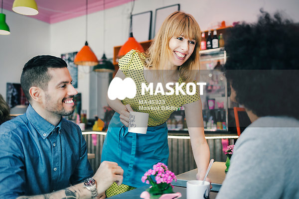 Servitris serverar par på kafé