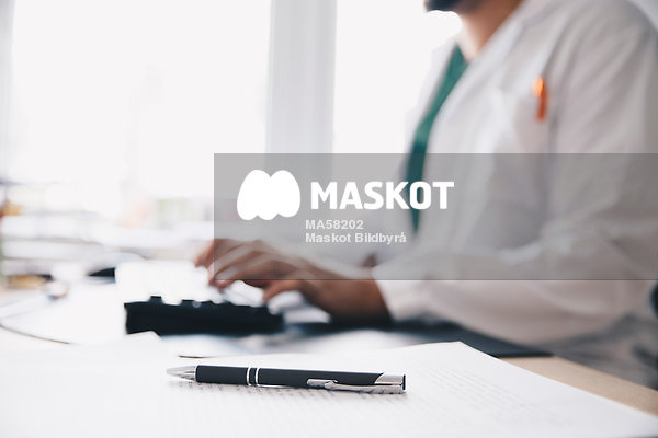 Läkare skriver på dator på kontor på sjukhus