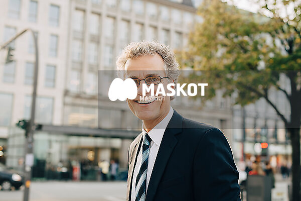 Porträtt av leende man med kostym i stad