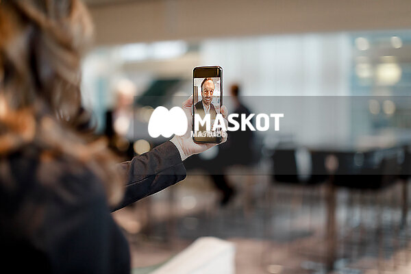 Kvinna pratar med kollega genom videosamtal på mobiltelefon