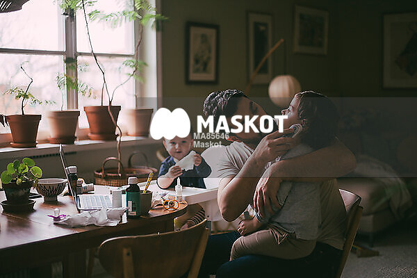 Pappa tar tempen på son under videosamtal med läkare
