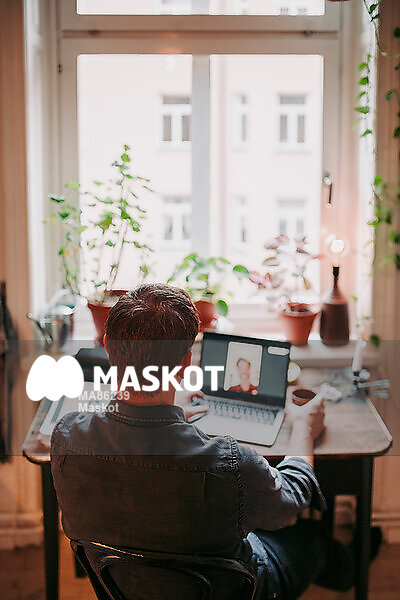 Affärsman har videosamtal med kollega hemifrån under pandemi