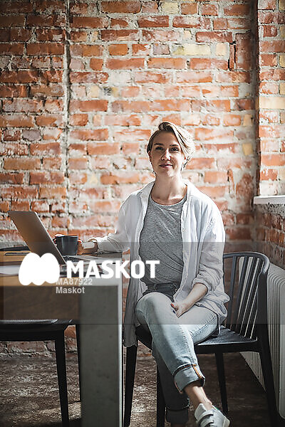 Porträtt av självsäker utvecklare vid konferensbord