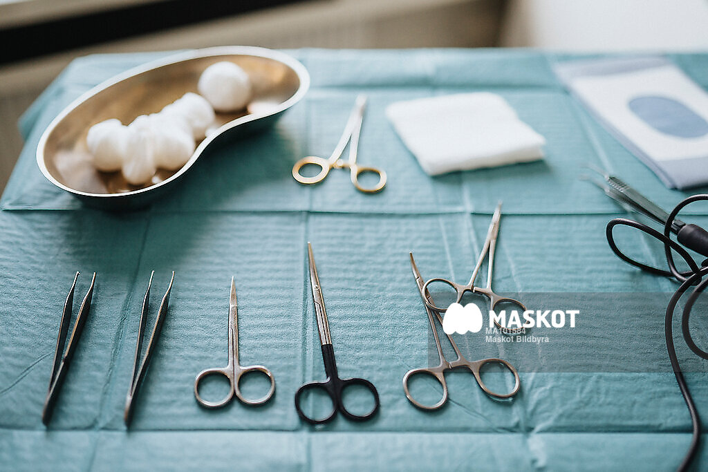 Instrument liggande på bord på sjukhus