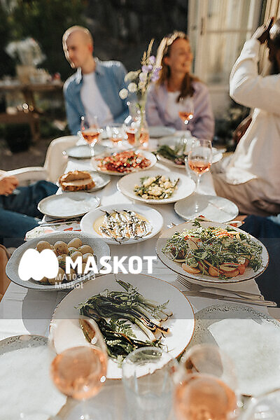 Bild av mat uppdukat på bord utomhus