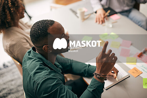 Affärsman räcker upp hand under möte med kollegor