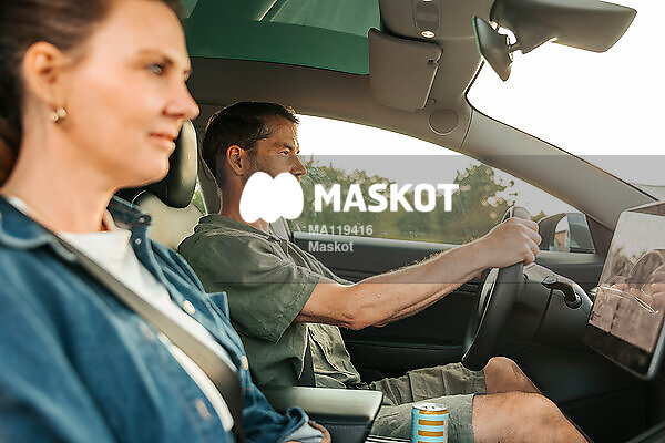 Man och kvinna kör elbil