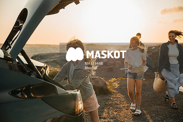 Ung flicka packar ut ur elbil