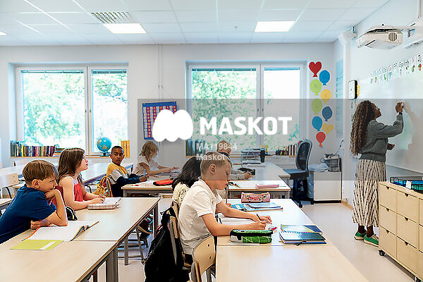 Förskoleklass sitter i klassrum