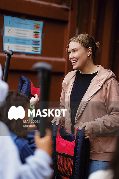 Glad lägerledare håller i flytväst