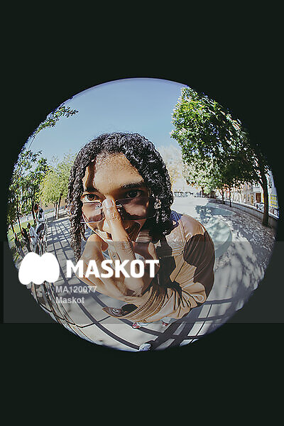 Porträtt av ung man med solglasögon