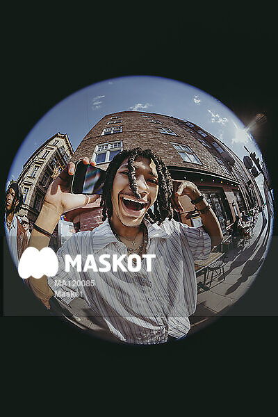 Porträtt av glad ung man stående i solen