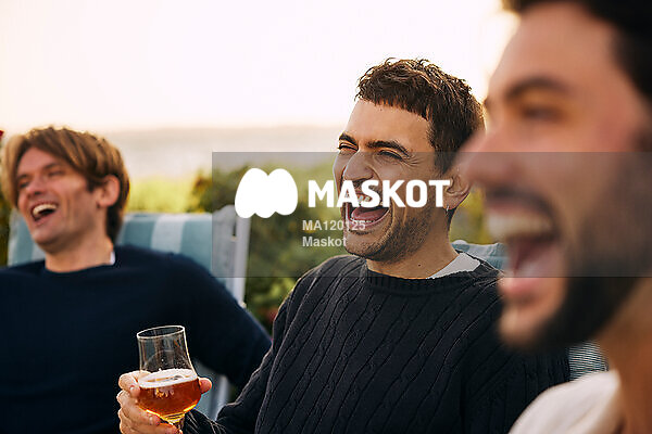 Glad man skrattar med vänner