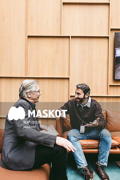Engagerad affärsman pratar med äldre kollega