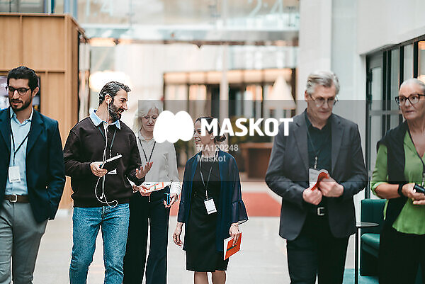 Arbetskollegor går och pratar