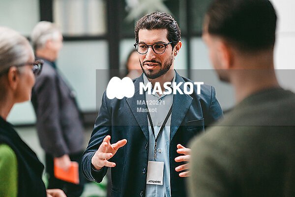 Affärsman diskuterar med kollegor