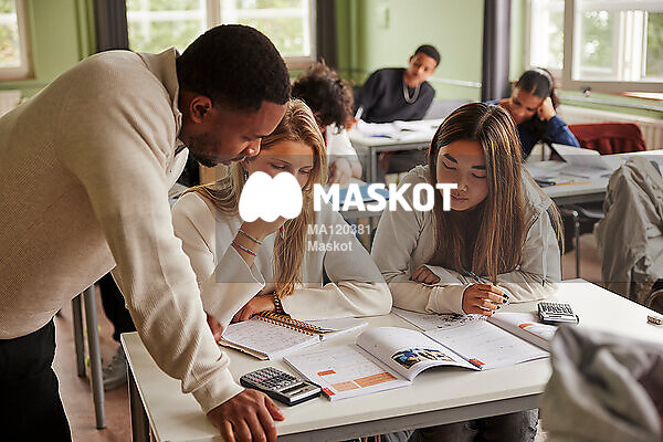 Manlig lärare hjälper elever med matematik