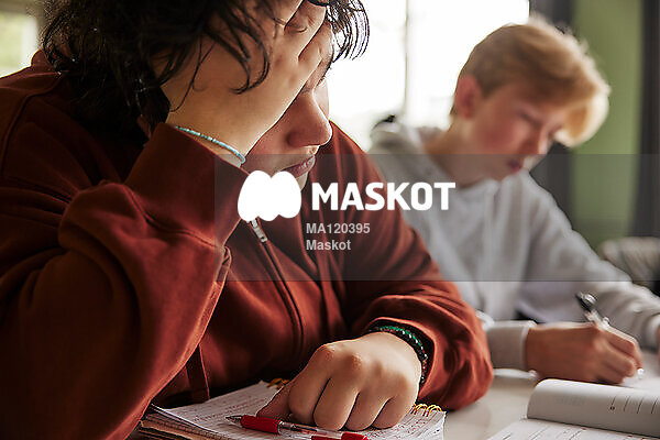 Tonårskille tänker sittande i klassrum