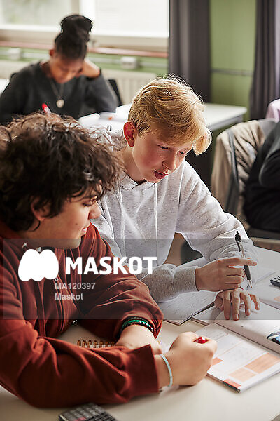 Tonårskillar hjälper varandra i klassrum