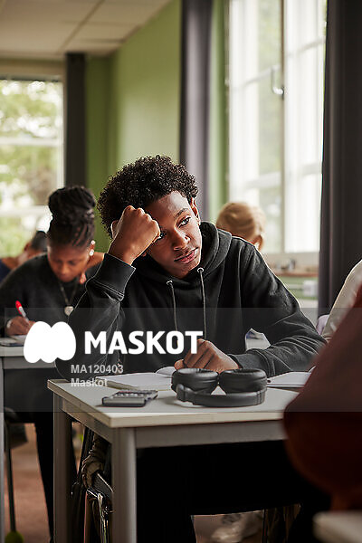 Tonårskille tänker sittande i klassrum