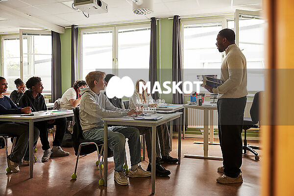 Manlig lärare pratar inför klass
