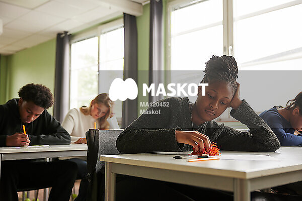Uttråkad tonårstjej sittande på lektion