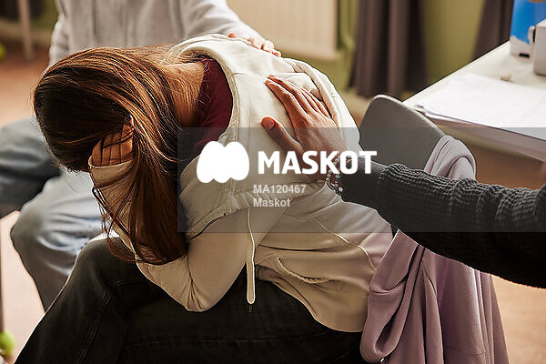 Ledsen tonårstjej får tröst av klasskompisar