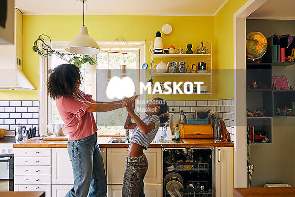 Mamma och dotter leker i kök