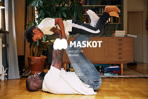 Pappa leker med son på golv
