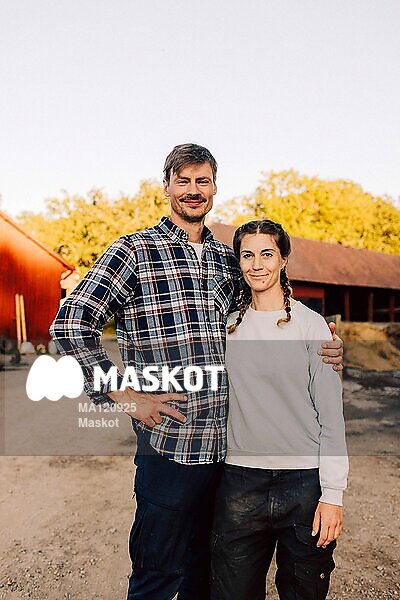 Porträtt av leende manlig och kvinnlig bonde