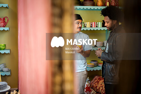 Man hjälper kund i inredningsaffär