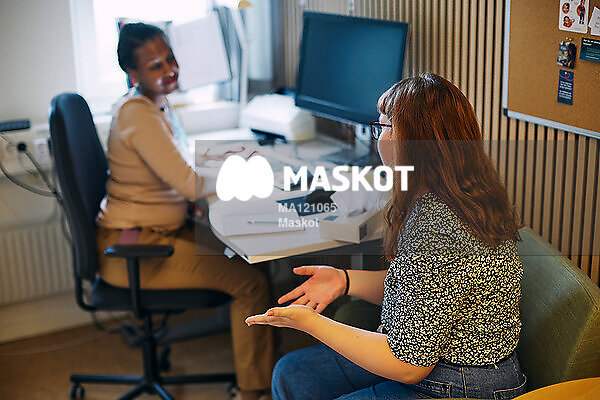 Tonårsflicka pratar med skolkurator
