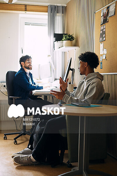Tonårspojke pratar med skolkurator