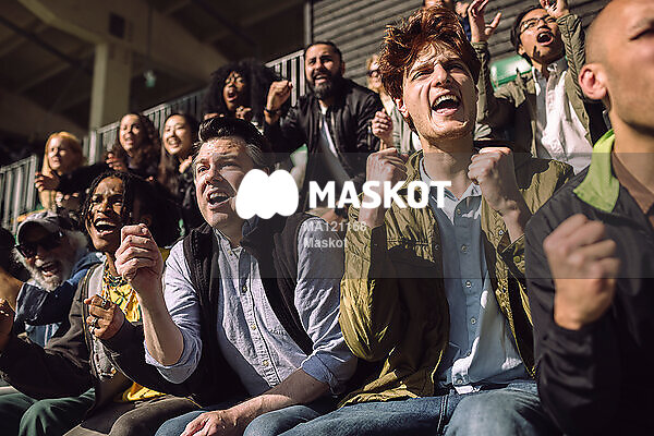 Glada supportrar firar på läktare