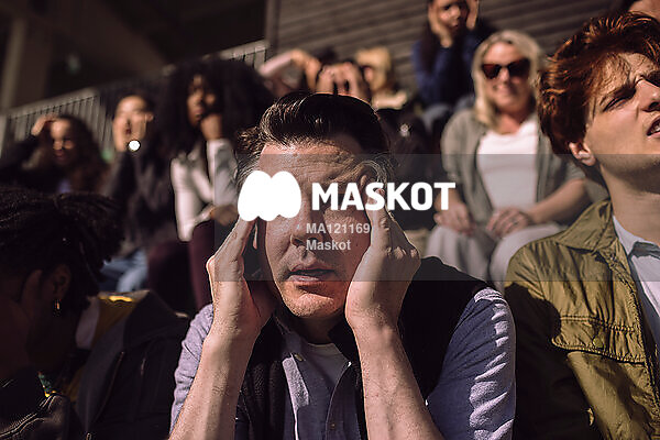 Stressad supporter gnuggar tinning på läktare