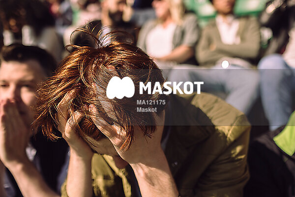 Uppgiven ung man sitter på läktare
