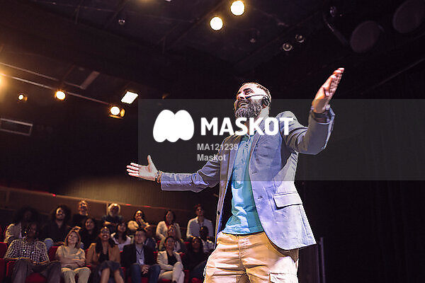 Glad man pratar inför publik