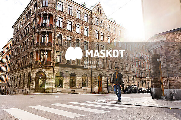 Ung man står vid övergångsställe