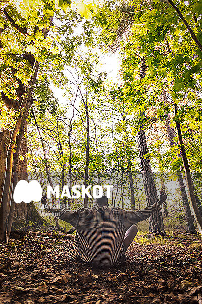 Man mediterar sittande i skog