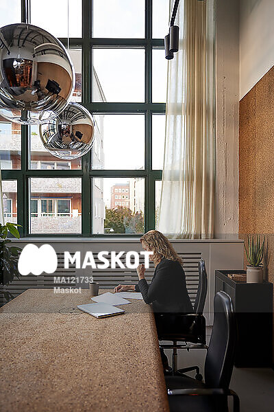 Affärskvinna sitter ensam i konferensrum