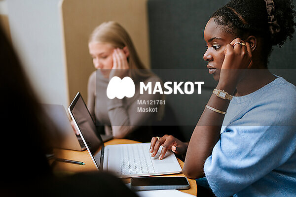 Kvinnlig student pluggar på universitet