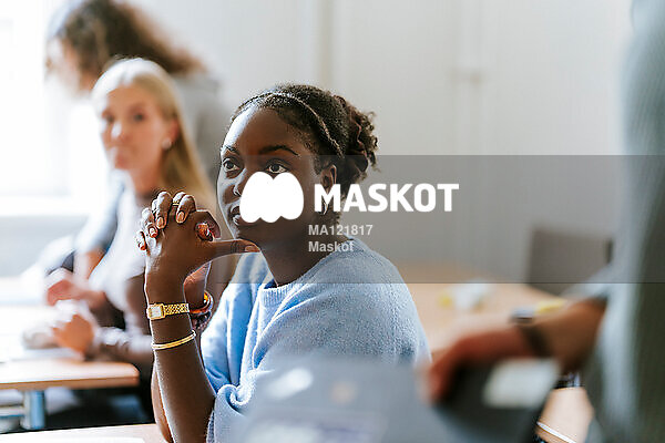 Kvinnlig student sitter i föreläsningssal