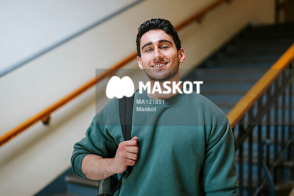Porträtt av leende manlig student som står på universitet
