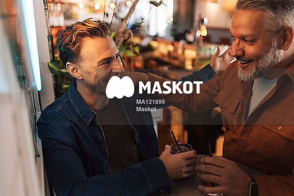 Glada vänner umgås i bar