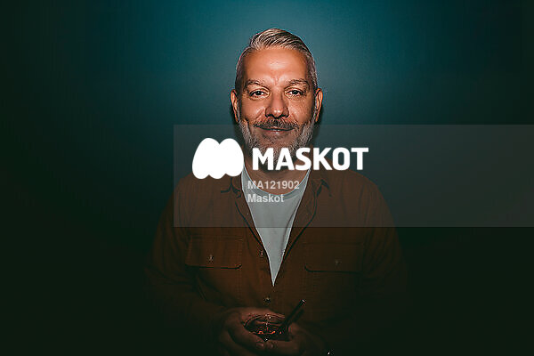 Porträtt av leende man som håller i drink