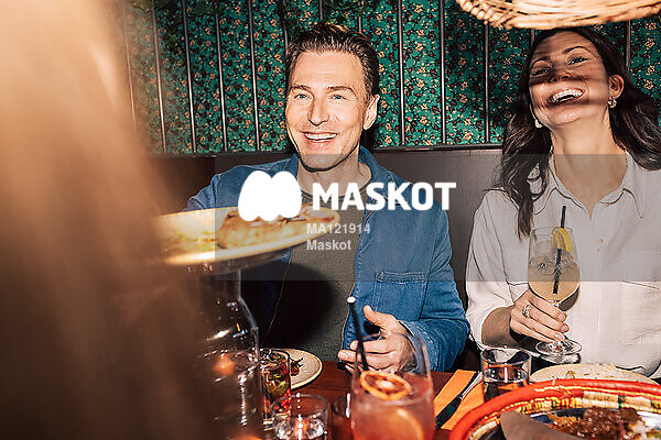 Glad man skickar tallrik med mat till vän
