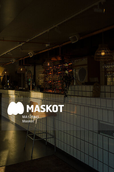 Stol placerad vid tom bar