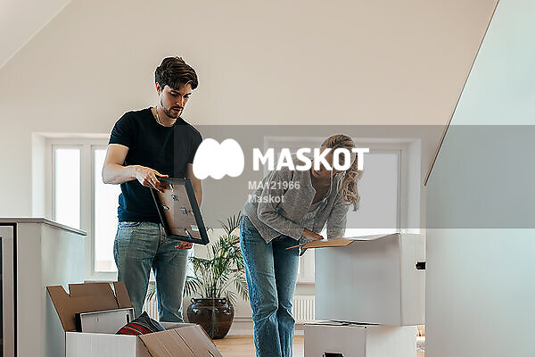 Ung man visar fotografi för flickvän