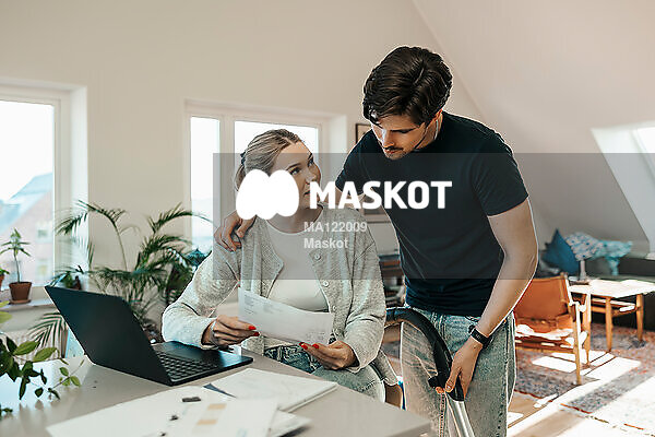 Ung man hjälper flickvän med räkning