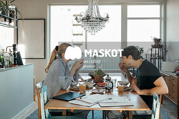 Ungt par äter frukost